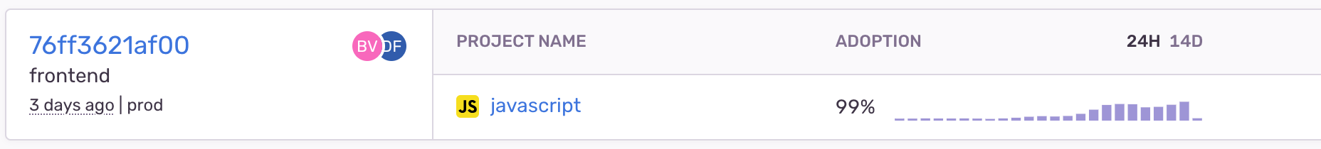 The adoption progress bar is calculated as a percentage of sessions/users in this release compared to all releases in the project, in the last 24 hours: